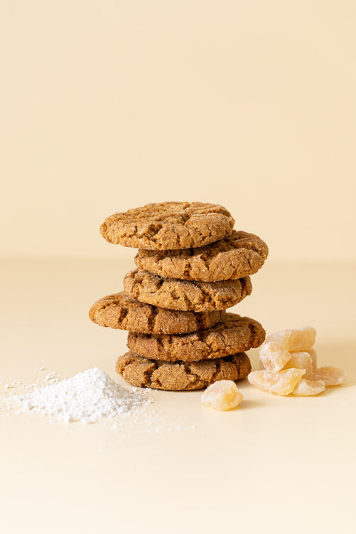Ginger Ingredients: Oat Flour, Salted Butter, Brown Sugar, Golden Syrup, Naked Ginger, Flaxseed, Sugar, Brewer’s Yeast, Ground Ginger, Raising Agent (500), Baking Powder.